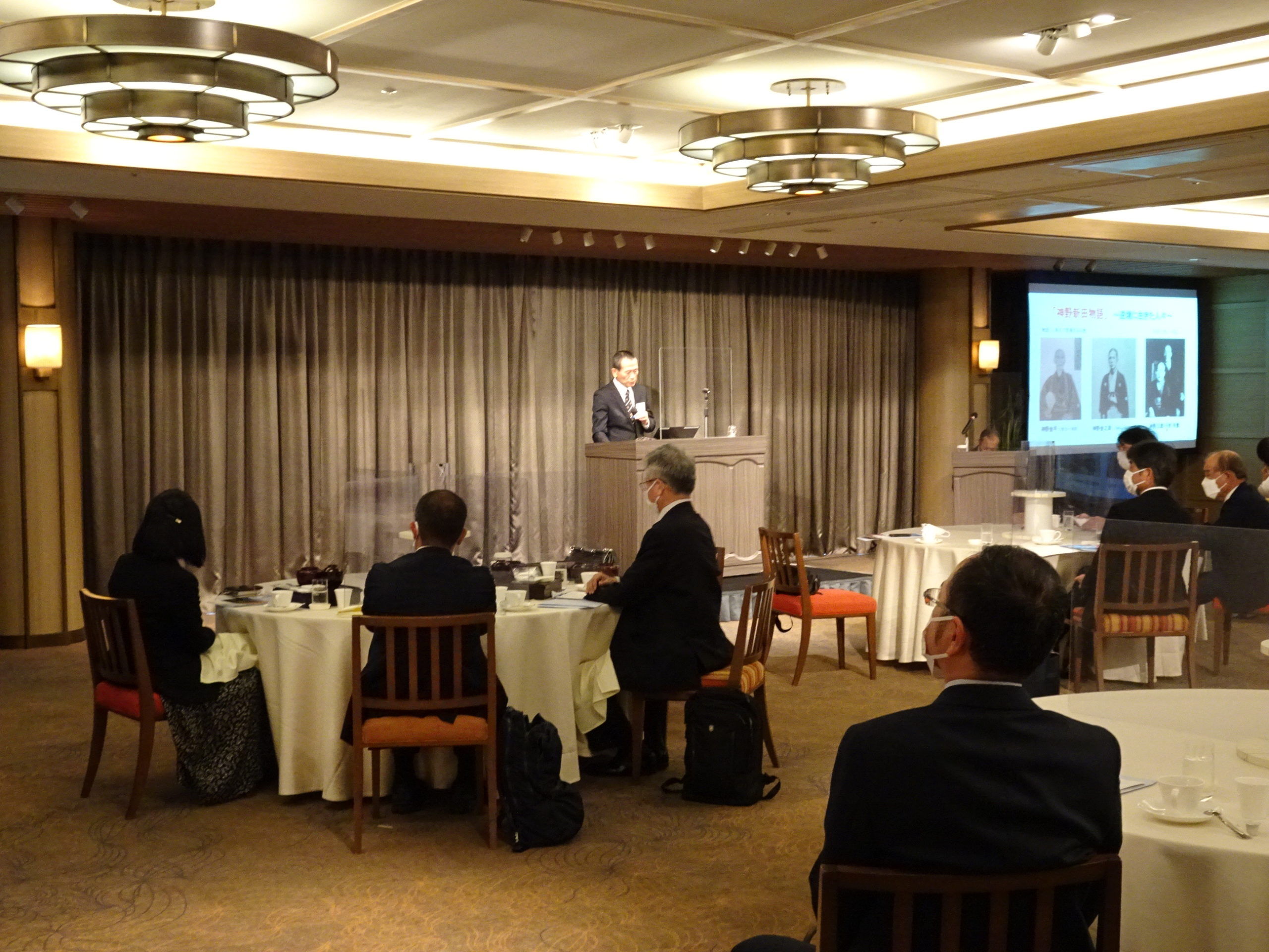 2022.11.04 第227回東三河午さん交流会 1.日 時 2022年11月4日(金)11:30~13:00 2.場 所 ホテルアークリッシュ豊橋 4階 ザ・テラスルーム 3.講 師 NPO法人ひとすじの会 事務局長 杉浦 博人 氏 テーマ 「群像劇『神野新田物語』~逆境に生きた人々~」 4.参加者 25名 開催案内(ダウンロード) 講演要旨 私が脚本を書いているひとすじの会の演目は、皆さまに支えていただいて、これまで4回×4日の16回をプラットの主ホールで公演している。次の12月は5回目の公演となる、群像劇「神野新田物語」である。「神野新田物語」は全部で3つのお芝居から構成されており、これまで1話2話を公演してきて、今回の第3話が最終話ということになっており、すべての話において「逆境に生きた人々」ということがテーマとなっている。登場人物は神野三郎さんが中心で、三郎さんの一代記といっても良い作品である。 NPO法人ひとすじの会は、演劇をする団体で、明治以降の近代の先達を主人公にするということで、豊橋の礎を築いた方を取りあげている。最初は製糸業で玉糸製糸を興した小淵しちさんの芝居「ひとすじの糸」という芝居を、2016年と2017年に行った。その後、「神野新田物語」を上演しており、これが2018年と2021年の8月であり、今回が5回目の講演になる。「神野新田物語」としては今回が第3話となり、最終話である。人物としては、神野太郎さんや豊橋市長だった河合陸郎さんが主な登場人物である。演劇は、まず脚本から出演者を集めて作っていく。また、支えてくださる方が必要で、パンフレットもお配りしているが、たくさんの企業や個人の方に支えていただいている。そして見ていただく方、この3つの要素で成り立っていると思う。 神野新田の堤防を築いたのは、服部組の服部長七である。毛利新田との決定的な違いは、服部長七の三和土を改良した「長七たたき」という人造石工法によって強靭に作られているということである。神野新田には、尾張や美濃、伊勢などから多く小作農として入植したが、最終的に残ったのはわずかである。北西の風に砂が舞い上げられる過酷な環境の中、収入が1日15銭の日雇い賃金のみという厳しさもあり、この小作生活に耐えきれず神野新田に見切りをつけて北海道など他地域に転出した人も多かったからである。また、地域内においても、軍隊関係に転職して出ていく人も多かった。 こうした暮らしを「神野新田物語」第2話でも取り上げている。夜なべ仕事で縄をなう。菰を編む。それでも借金に喘ぐ。そのため、味噌や醤油を隣同士で融通し合う。物語の中では、借金を残したまま夜逃げをした権三という人物が登場している。 今回の「神野新田物語」は第3話で最終話である。「戦争を生き抜いて」という副題をつけているが、主な登場人物は、神野三郎・りき、神野太郎・花子、河合陸郎・愛子という3夫妻6人。第3話の出来事として、人造羊毛工場の誘致による戦前の豊橋の工業化と農業漁業者との対立の騒動から物語がスタートする。昭和7年に不景気により明治銀行が破綻、神野・富田家は精算のために神野新田を明治銀行に譲渡し、預金者には神野新田土地株式会社の株式を渡した。その後の太平洋戦争、昭和20年に行われた神野新田の農地解放、昭和28年の13号台風の襲来による神野新田の堤防の決壊と一丸となって立ち向かった人々の姿、神野太郎と河合陸郎との出会いから始まった、豊橋港や臨海工業地帯の整備など後の大事業に繋がる豊橋の新時代の予感などが主な内容である。ぜひ多くの方に生の舞台公演をご覧いただきたいと思う。