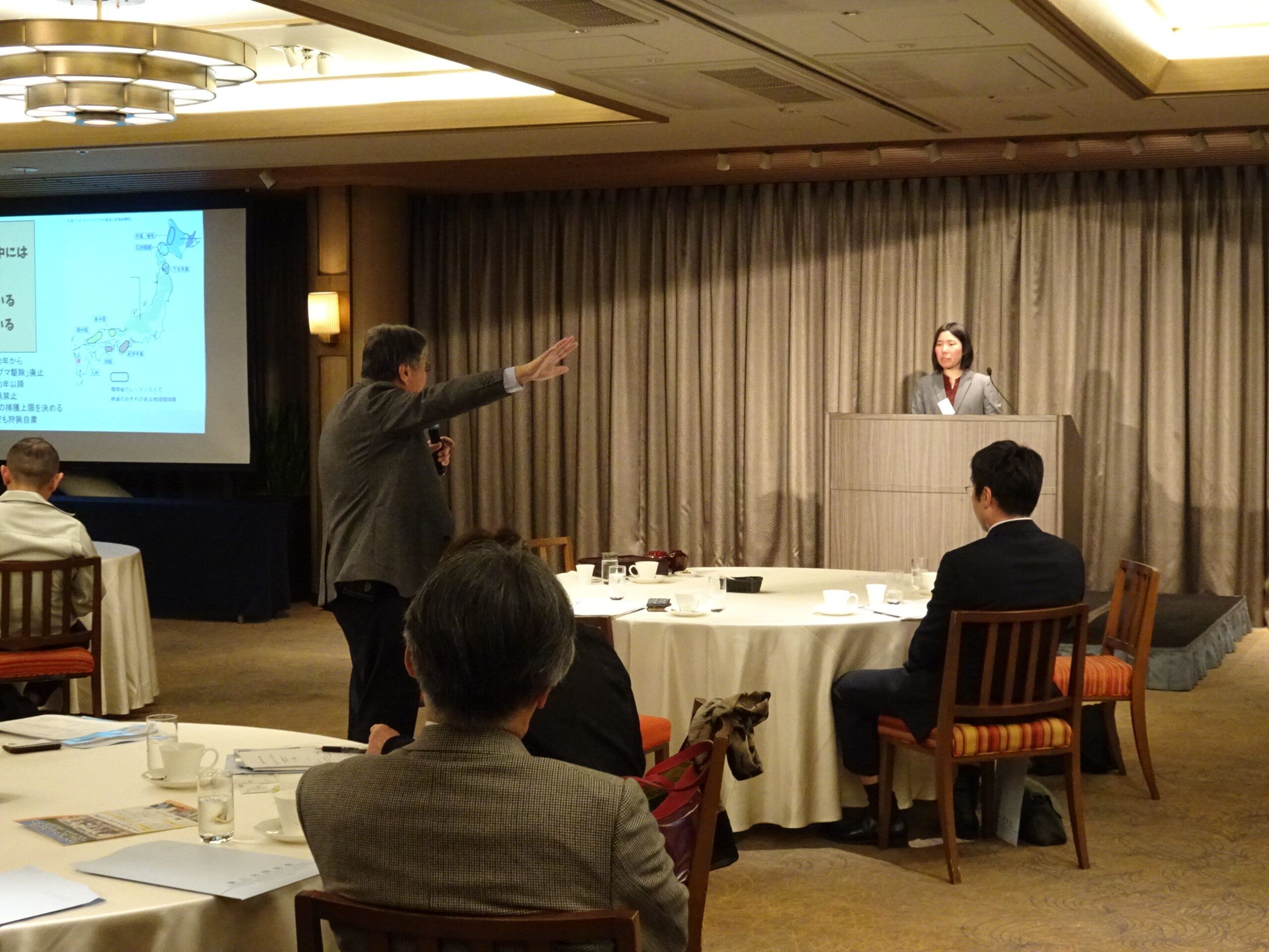 私は東栄町の地域おこし協力隊として普段は鳥獣被害対策の普及啓発に取り組んでいる。本日伝えたいことは、恐れるではなく畏れるとタイトルに入れたように、クマをただ怖いと恐れるのではなく、正しく知って距離を取っていくことの重要性である。私は東栄町で古民家を借りて生活しているが、庭先で育てた野菜は猿に食べられ、庭にあった盆栽は鹿にかじられた。人間が思っている以上に動物たちは頭が良く、食べることに関しては人間が思いつかないようなところからアタックしてくる。こうした動物の個体数について、昭和初期から後半にかけて激減した時代があった。そこから国は動物保護の政策に移り、1995年までは雌鹿の捕獲も禁止されていたが、数が増えて捕獲の方向に変わってきた。